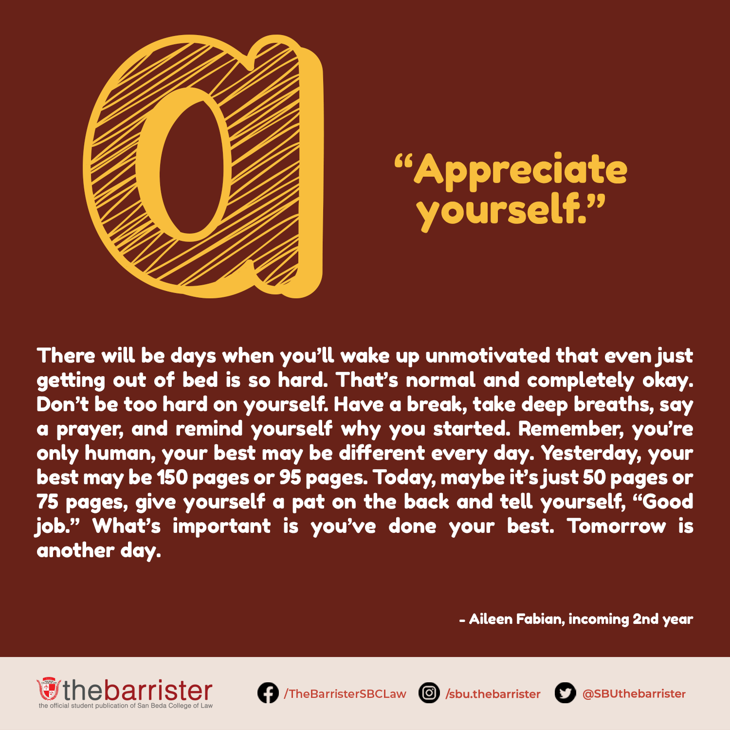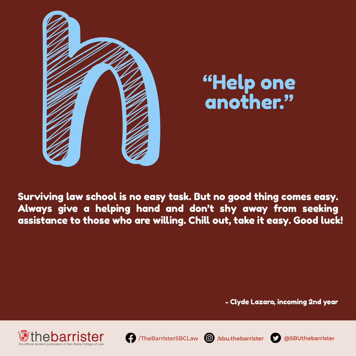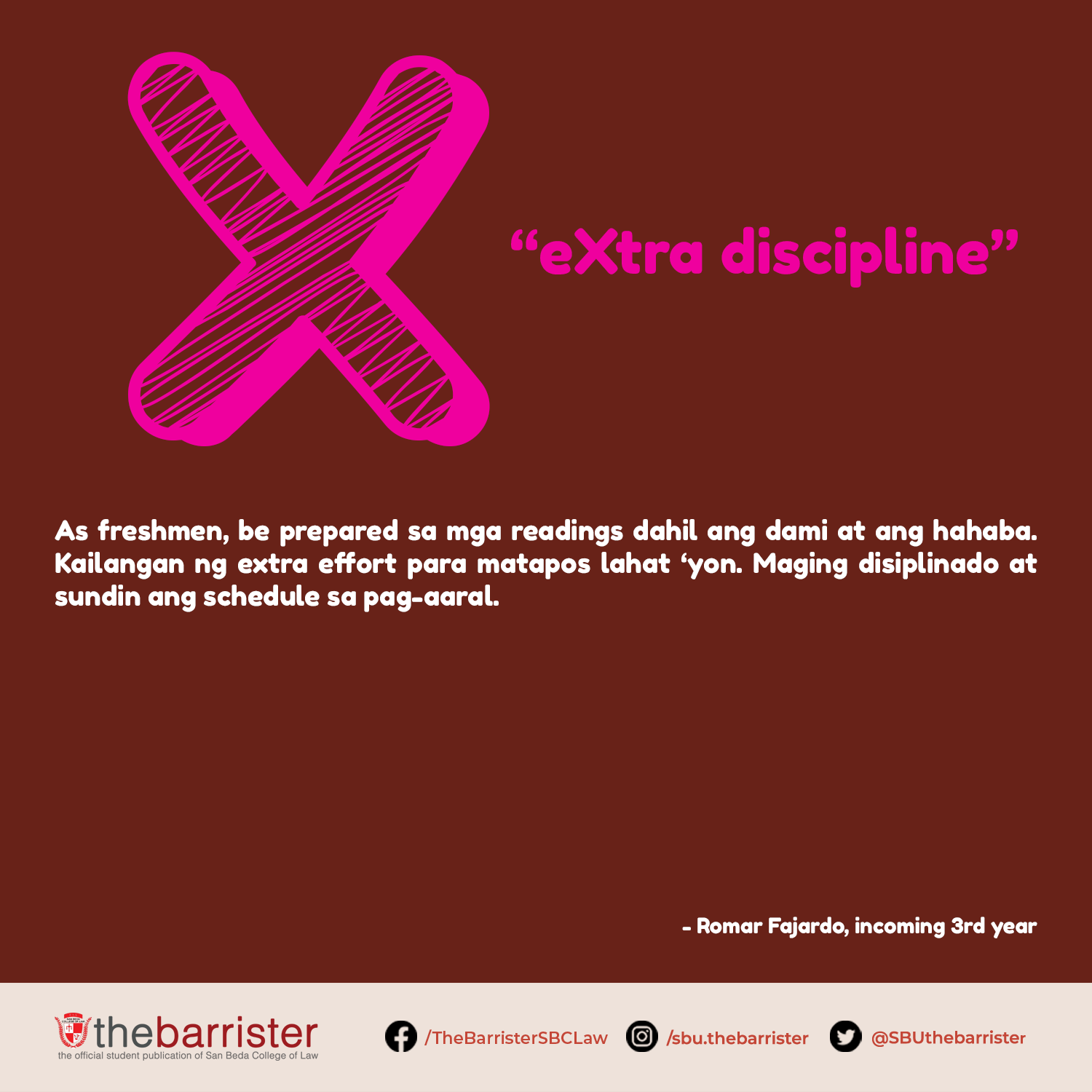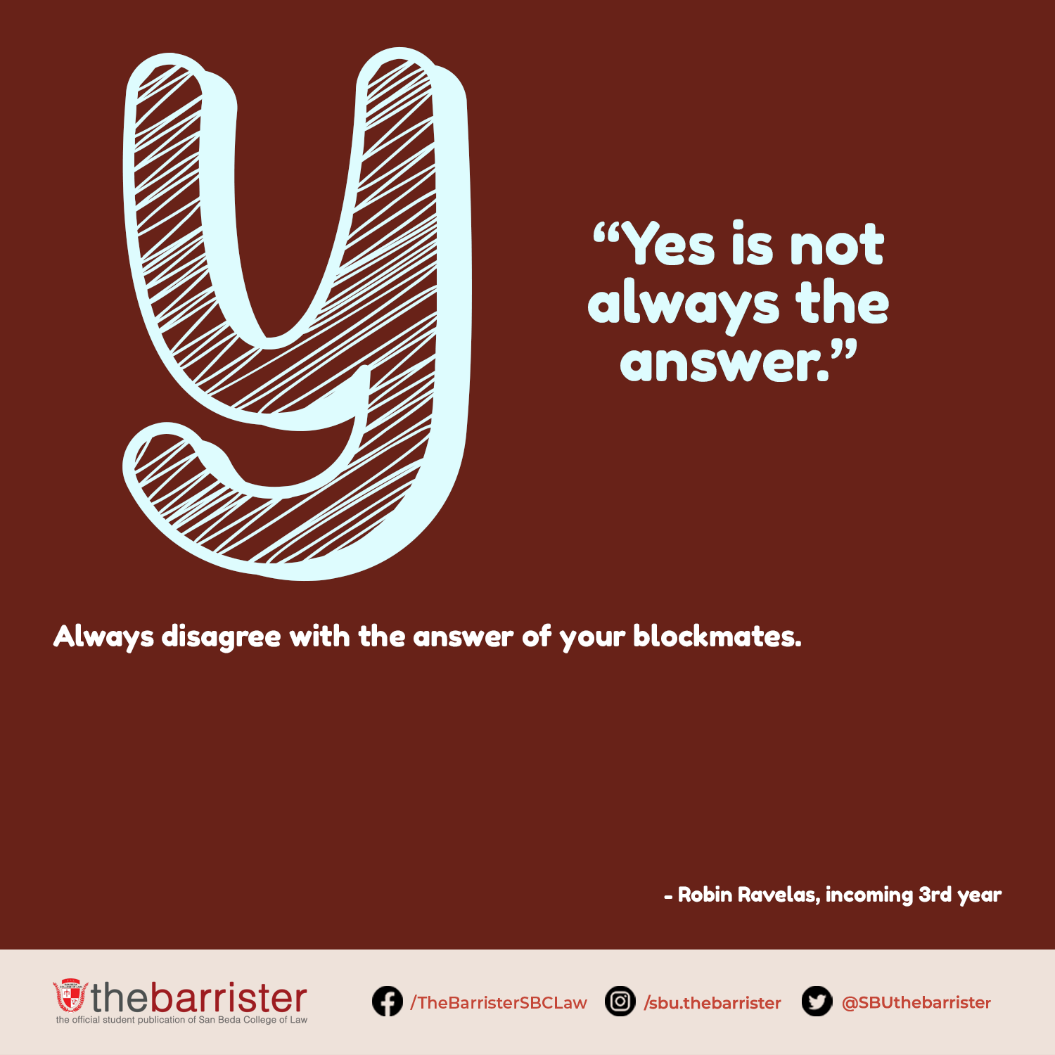 As the new academic year begins, thebarrister presents the “ABCs of Law School,” a quick primer for our incoming Bedan law freshmen containing useful tips and advice straight from your fellow Bedan law students and graduates.