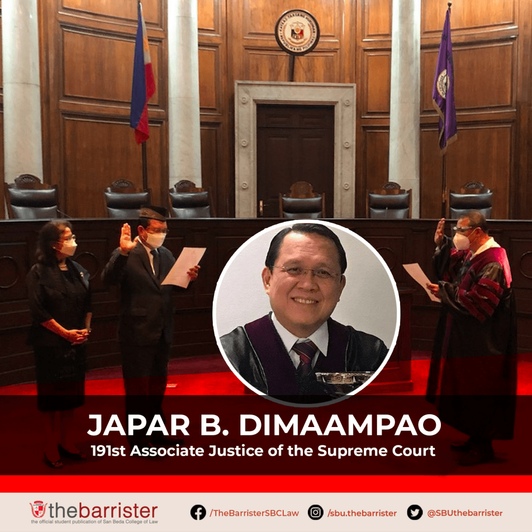 Justice Dimaampao is the 191st Associate Justice of the SC and will fill the post vacated when Chief Justice Alexander Gesmundo was promoted as top magistrate.