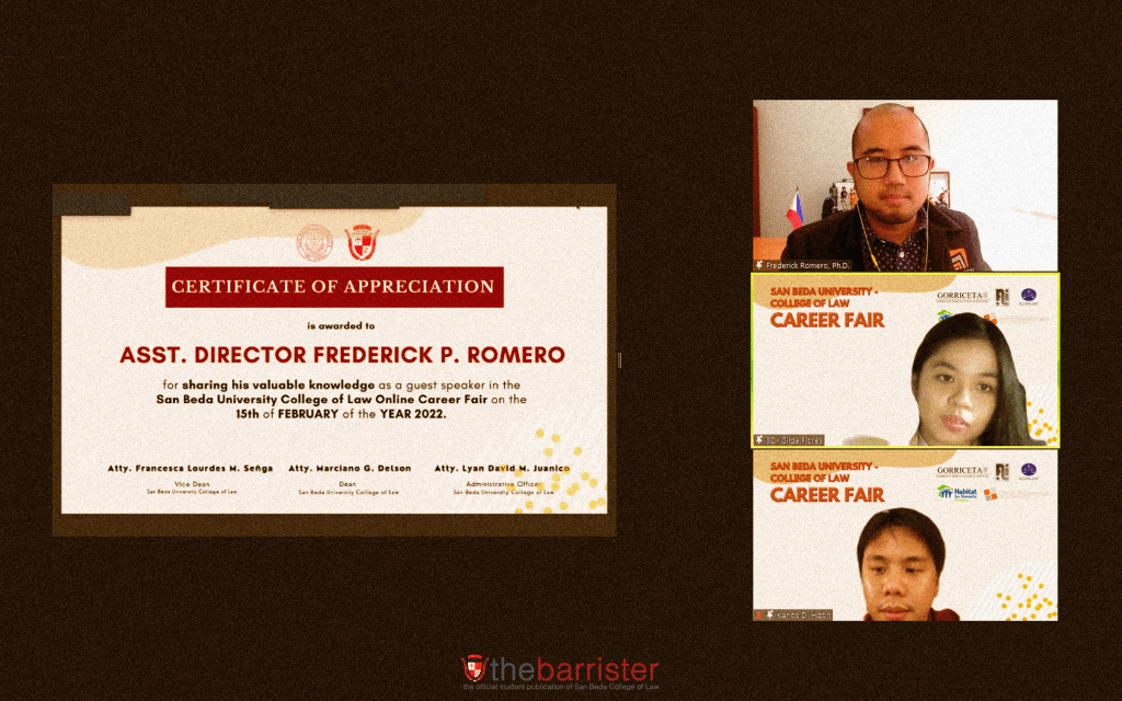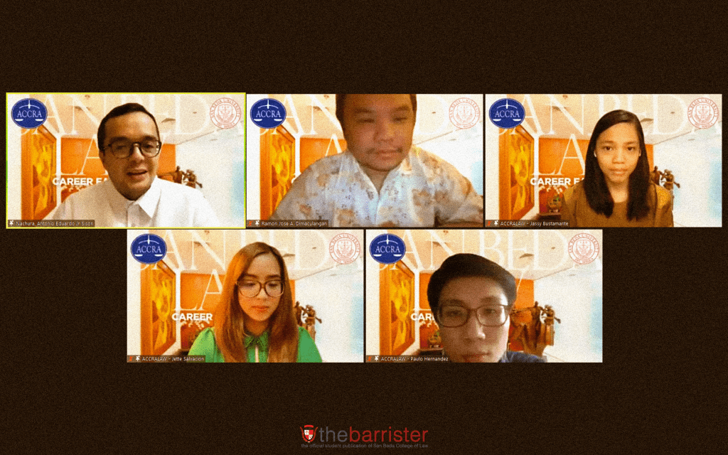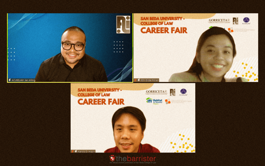 MENDIOLA, MANILA โ The first-ever Online Career Fair was conducted yesterday through the joint efforts of the San Beda University-College of Law (SBU-COL) and the Law Student Government (LSG). The whole day event showcased speakers from a wide array of law firms and organizations aimed to introduce future Bedan lawyers to different career options.