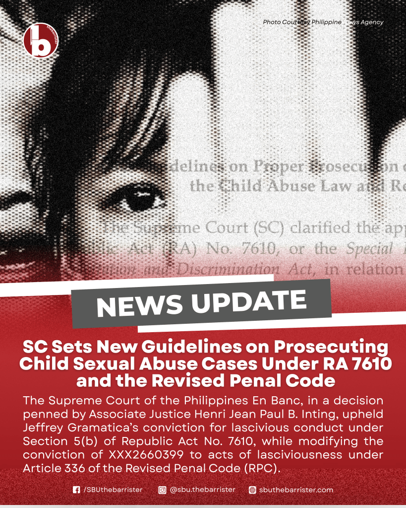 The Supreme Court of the Philippines En Banc, in a decision penned by Associate Justice Henri Jean Paul B. Inting, upheld Jeffrey Gramatica’s conviction for lascivious conduct under Section 5(b) of Republic Act No. 7610, while modifying the conviction of XXX2660399 to acts of lasciviousness under Article 336 of the Revised Penal Code (RPC).